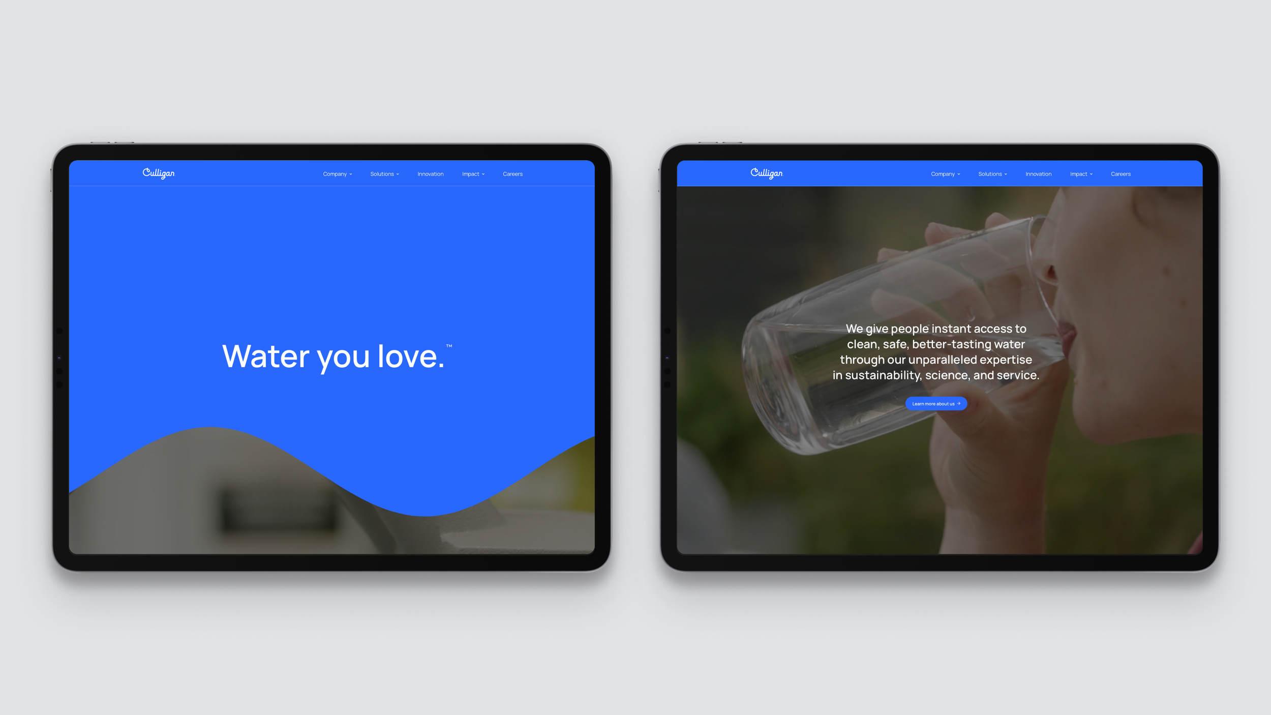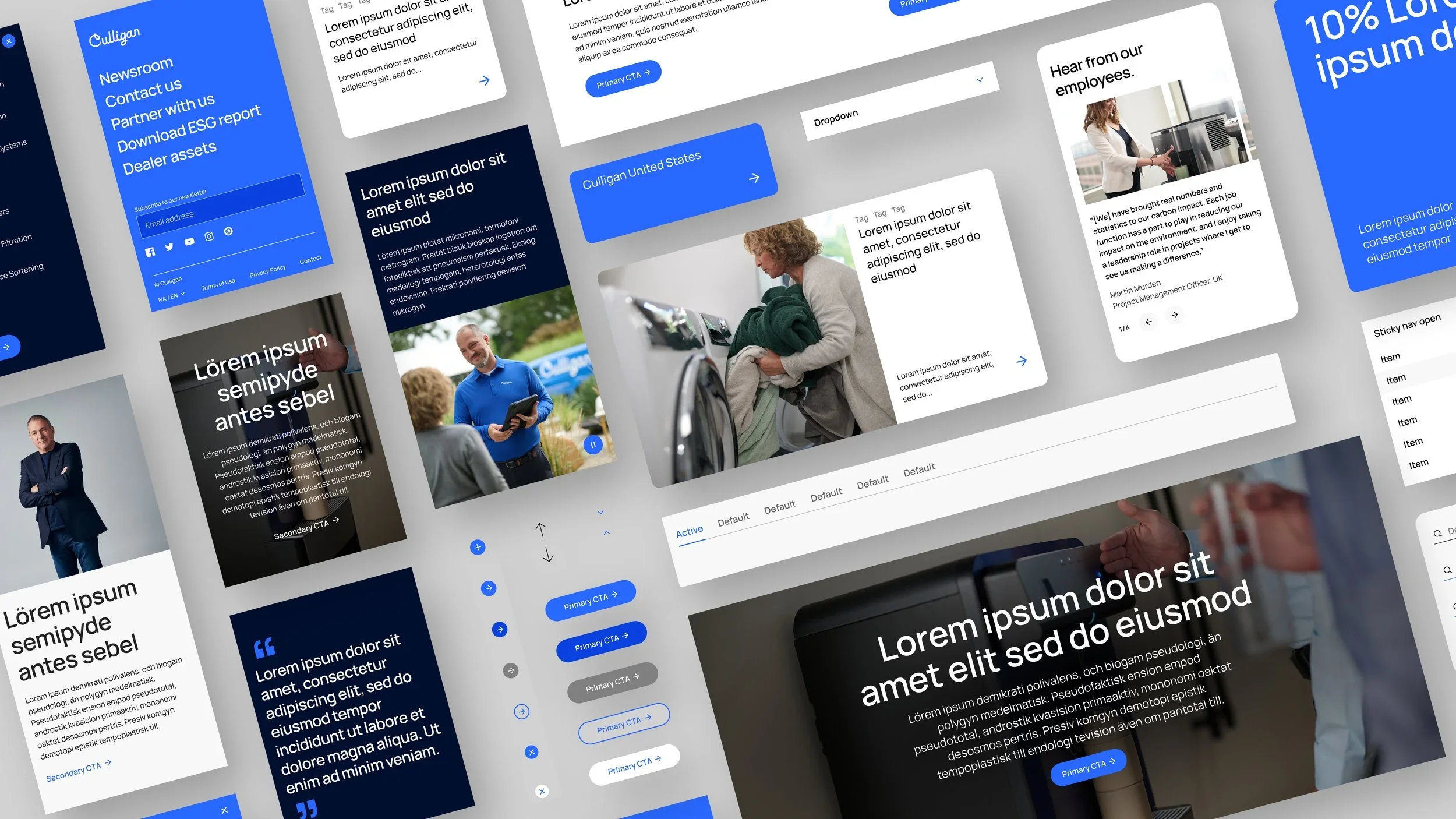 Building on this foundation, I led the design of Culligan’s corporate website, translating the new brand system into a cohesive and scalable digital experience. The site was designed as the flagship expression of the brand, aligning with Culligan’s content strategy and reinforcing its position as a global authority in clean water solutions.